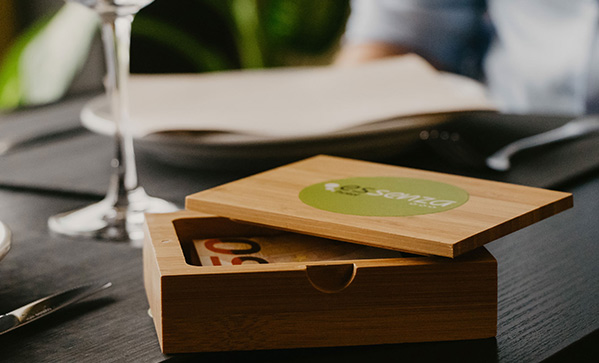 Unievolution ha una vasta gamma di cartelle, espositori, pannelli fotografici, scatole di bambù, liste dei vini, sottomano e pannelli.